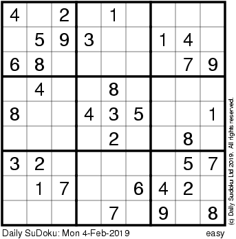 The Daily SuDoku: Mon 4-Feb-2019