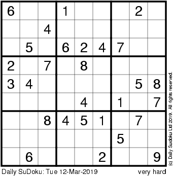 The Daily SuDoku: Tue 12-Mar-2019