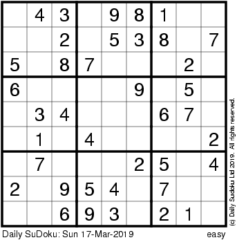 The Daily SuDoku: Sun 17-Mar-2019