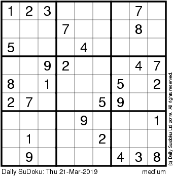 The Daily SuDoku: Thu 21-Mar-2019