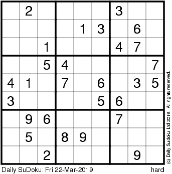 The Daily SuDoku: Fri 22-Mar-2019