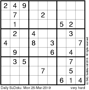The Daily SuDoku: Mon 25-Mar-2019