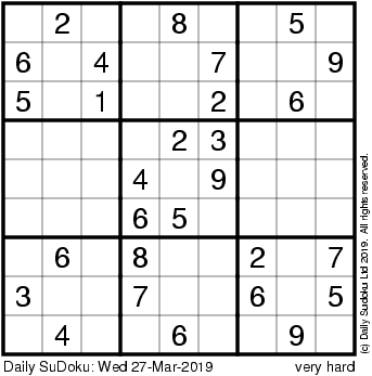 The Daily SuDoku: Wed 27-Mar-2019
