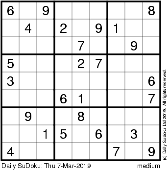 The Daily SuDoku: Thu 7-Mar-2019