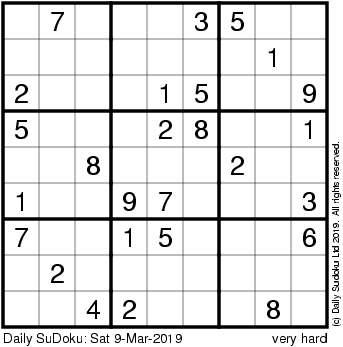 The Daily SuDoku: Sat 9-Mar-2019