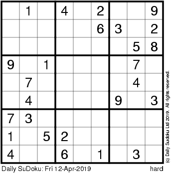 The Daily SuDoku: Fri 12-Apr-2019