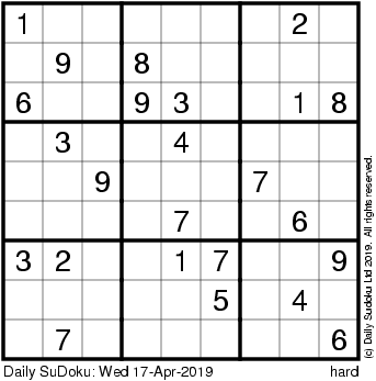 The Daily SuDoku: Wed 17-Apr-2019