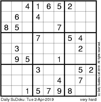 The Daily SuDoku: Tue 2-Apr-2019