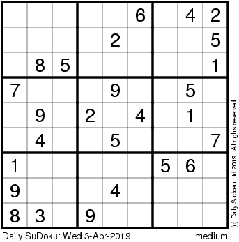 The Daily SuDoku: Wed 3-Apr-2019