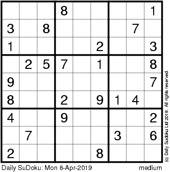 The Daily SuDoku: Mon 8-Apr-2019