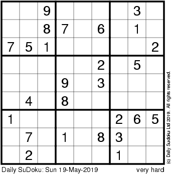The Daily SuDoku: Sun 19-May-2019