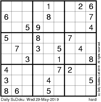 The Daily SuDoku: Wed 29-May-2019