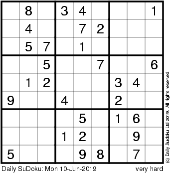 The Daily SuDoku: Mon 10-Jun-2019