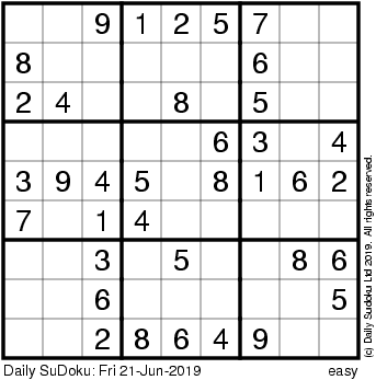 The Daily SuDoku: Fri 21-Jun-2019