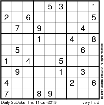 The Daily SuDoku: Thu 11-Jul-2019