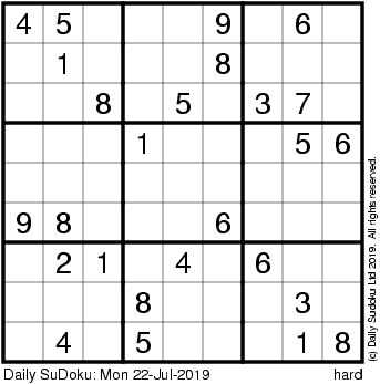 The Daily SuDoku: Mon 22-Jul-2019