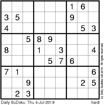 The Daily SuDoku: Thu 4-Jul-2019