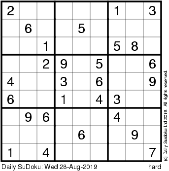 The Daily SuDoku: Wed 28-Aug-2019