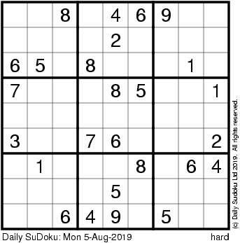 The Daily SuDoku: Mon 5-Aug-2019