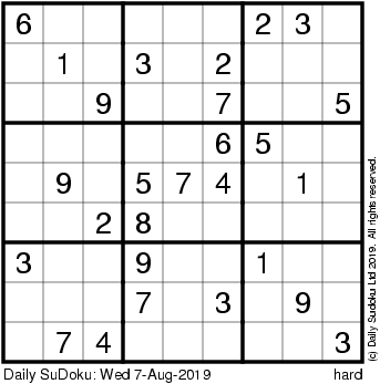 The Daily SuDoku: Wed 7-Aug-2019