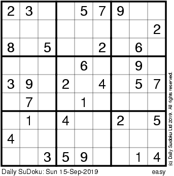 The Daily SuDoku: Sun 15-Sep-2019