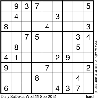 The Daily SuDoku: Wed 25-Sep-2019