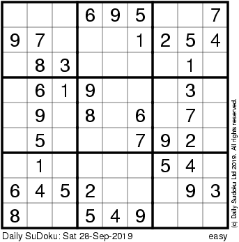 The Daily SuDoku: Sat 28-Sep-2019