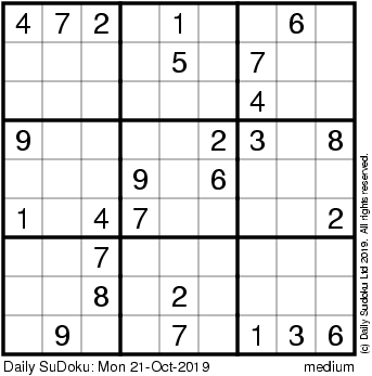 The Daily SuDoku: Mon 21-Oct-2019