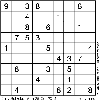 The Daily SuDoku: Mon 28-Oct-2019