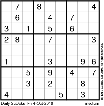The Daily SuDoku: Fri 4-Oct-2019