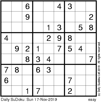 The Daily SuDoku: Sun 17-Nov-2019