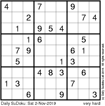 The Daily SuDoku: Sat 2-Nov-2019