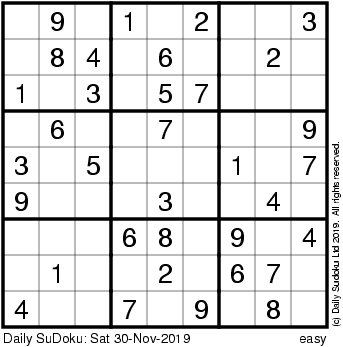 The Daily SuDoku: Sat 30-Nov-2019