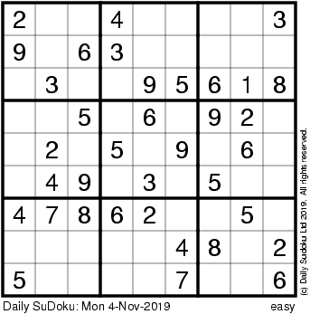 The Daily SuDoku: Mon 4-Nov-2019