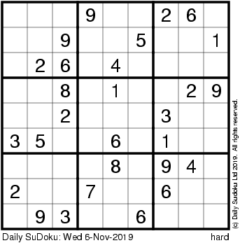 The Daily SuDoku: Wed 6-Nov-2019