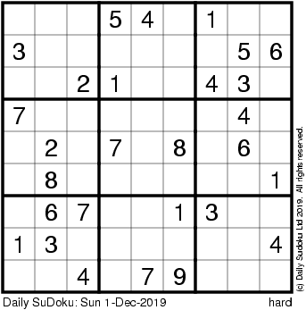 The Daily SuDoku: Sun 1-Dec-2019