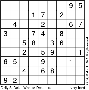 The Daily SuDoku: Wed 18-Dec-2019