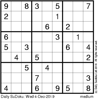 The Daily SuDoku: Wed 4-Dec-2019