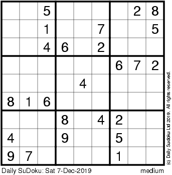 The Daily SuDoku: Sat 7-Dec-2019
