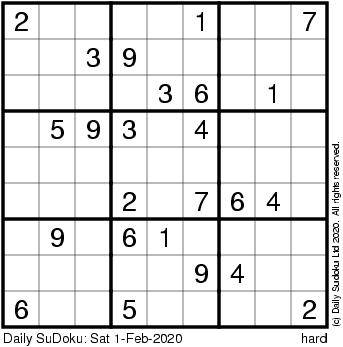 The Daily SuDoku: Sat 1-Feb-2020