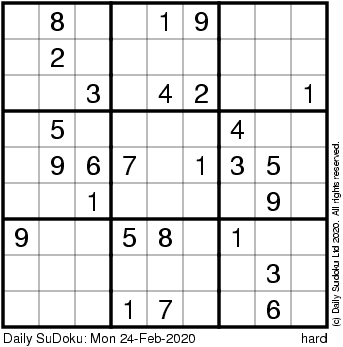 The Daily SuDoku: Mon 24-Feb-2020