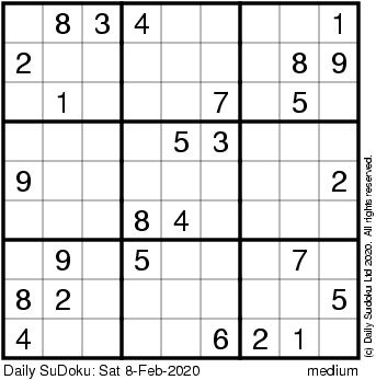 The Daily SuDoku: Sat 8-Feb-2020
