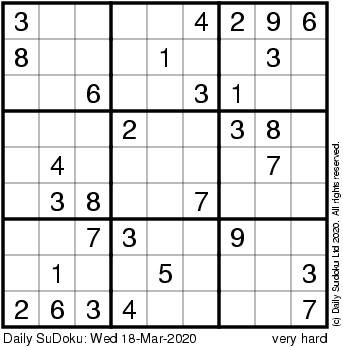 The Daily SuDoku: Wed 18-Mar-2020