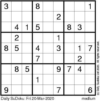 The Daily SuDoku: Fri 20-Mar-2020
