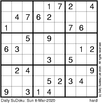 The Daily SuDoku: Sun 8-Mar-2020