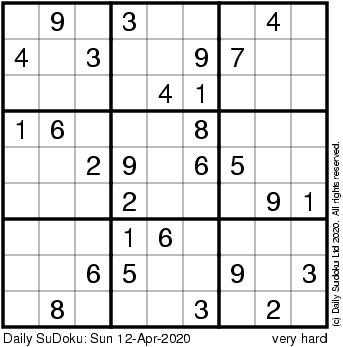 The Daily SuDoku: Sun 12-Apr-2020