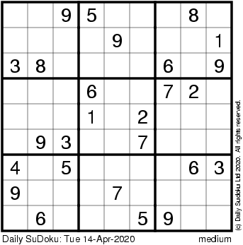 The Daily SuDoku: Tue 14-Apr-2020
