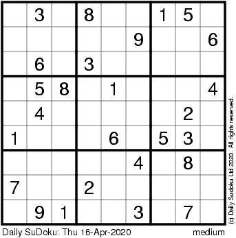 The Daily SuDoku: Thu 16-Apr-2020