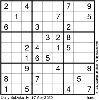 The Daily SuDoku: Fri 17-Apr-2020