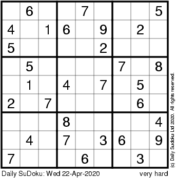 The Daily SuDoku: Wed 22-Apr-2020